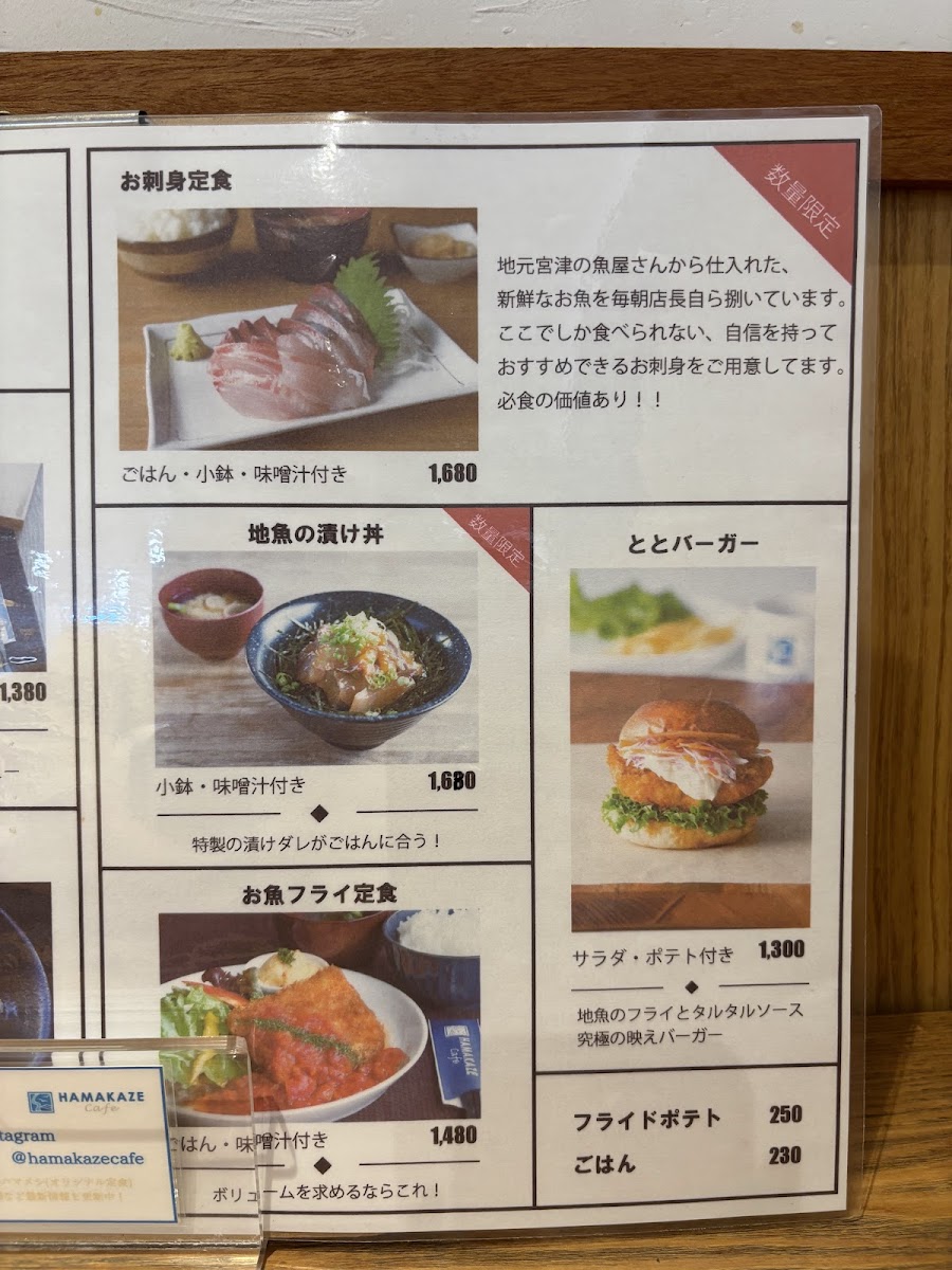 Introducing the menu of HAMAKAZE Cafe located in the scenic 道の駅 海の京都 宮津, where the fresh coastal air enhances your culinary experience. This charming cafe specializes in seafood, featuring locally sourced ingredients celebrated in unique dishes.