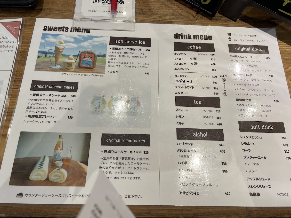 HAMAKAZE Cafe(道の駅 海の京都 宮津) Menu